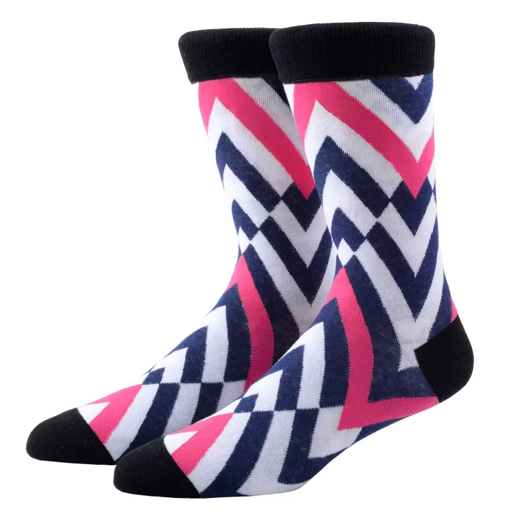 Bold, dynamic, and full of energy! ⚡ The Zigzag Rush socks bring together striking chevron patterns in navy, white, and vibrant pink. Whether you're dressing up or adding a pop of fun to your casual fit, these socks are the perfect way to step up your style! 🚀🔥